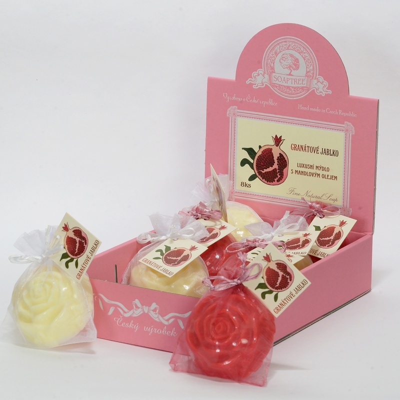 České, ručně nalévané luxusní glycerinové mýdlo s vůní granátového jablka. Příjemně voní a zanechává vaší pokožku hebkou a vláčnou. Zabaleno v nádherném organzovém sáčku originální designovou cedulkou. Hezký český a praktický dárek.